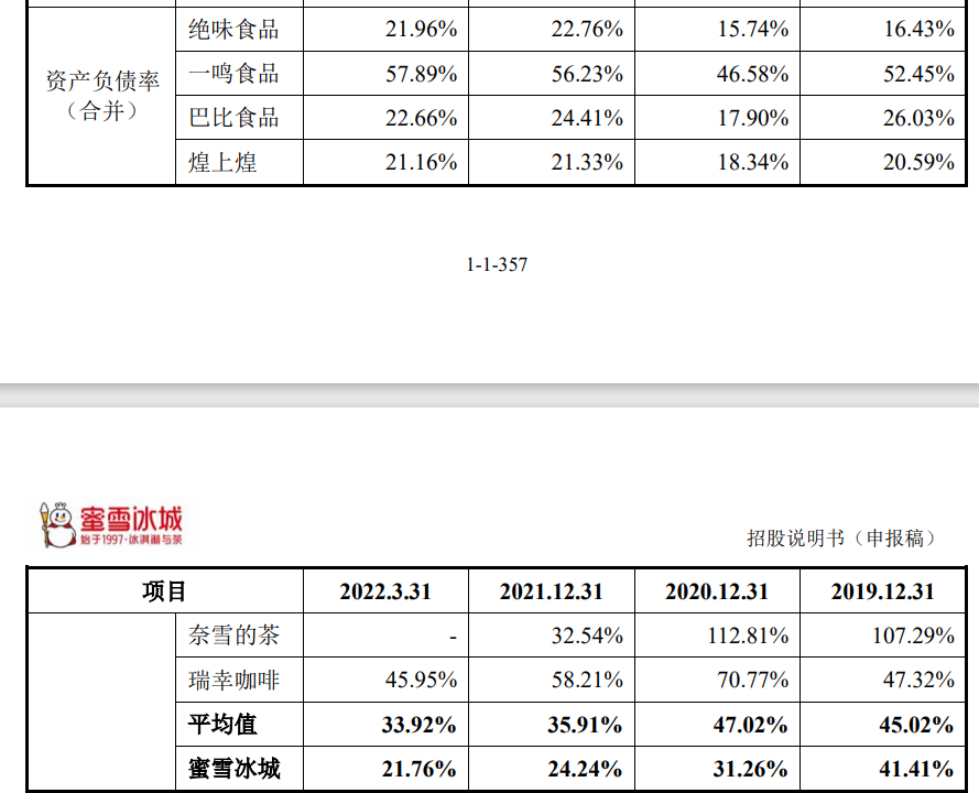 与同行业可比上市公司平均值相比,蜜雪冰城报告期各期末的资产负债率均较低,对此,公司解释道:“这是因为公司盈利状况良好,自有资金较为充足,整体负债水平较低,资产负债率不断下降。”