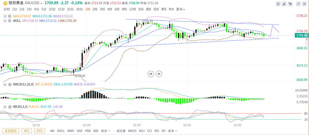 黄金昨天整体波动不大,日线收阴线十字星,上有阻力下有支撑,仅仅看目前的短线,黄金是比较明显的震荡节奏,看结构,黄金依然是多头结构,连续性的回撤也未能有效跌破1700,日内操作我们暂时只做短线的震荡结构,非农数据后我们再去重新划分结构操作;