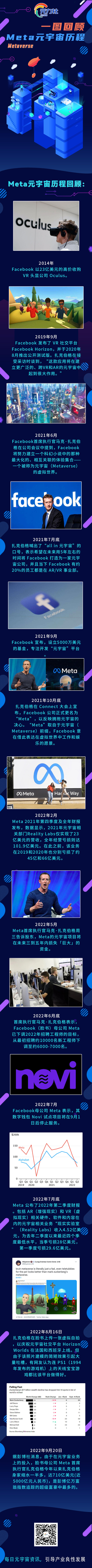 扎克伯格在 Connect 大会上宣布,Facebook 公司正式更名为“Meta”,以反映拥抱元宇宙的决心。“Meta”取自于元宇宙(Metaverse)前缀,Facebook 意在借此表达在虚拟世界中工作和娱乐的愿景。