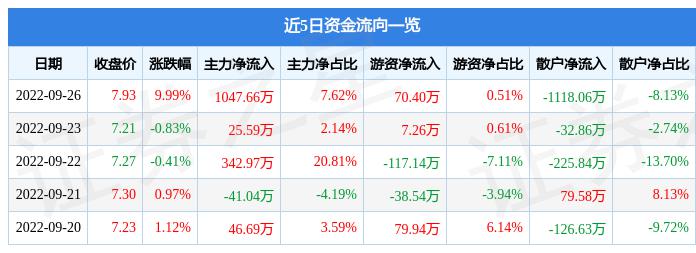 资金流向数据方面,9 月 26 日主力资金净流入 1047.66 万元,游资资金净流入 70.4 万元,散户资金净流出 1118.06 万元。
