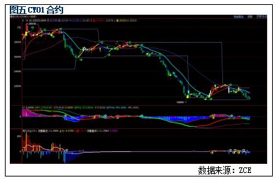 9月28日,棉纱01合约震荡运行。当日最高价20610元/吨,最低价20175元/吨,收盘价20240元/吨,较上一交易日-225,持仓量3474,较上一交易日+88手。从周氏超赢技术面来看,CK指标给出绿色看跌信号,F2指标红色,ZJLL指标处于0轴下方,综合来看指标偏空