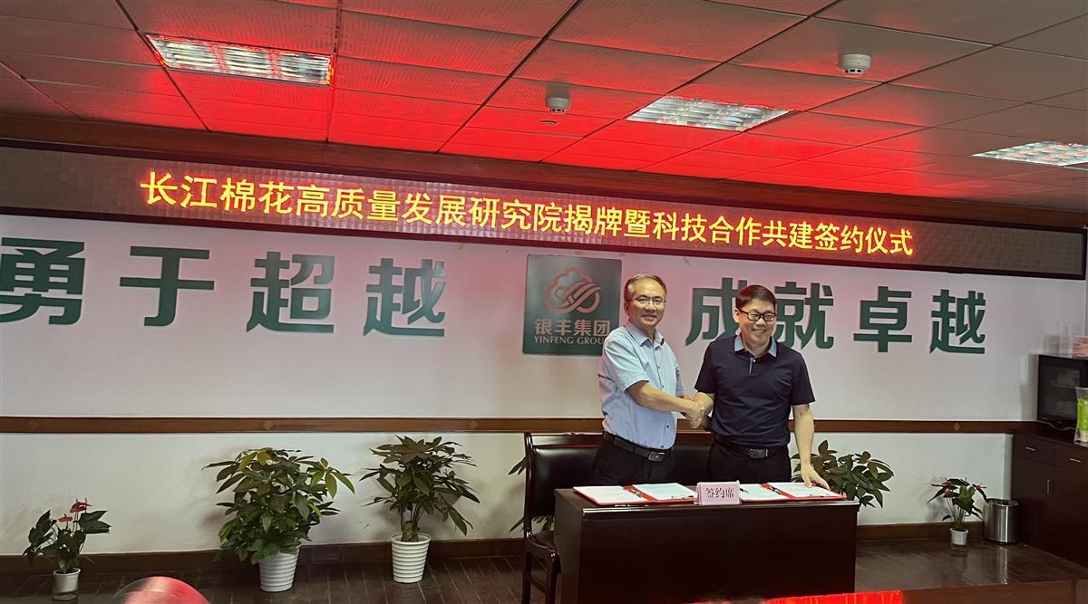 9月23日下午,“长江棉花高质量发展研究院揭牌暨银丰股份和省农科院科技合作共建签约仪式”在武汉银丰大厦举行。未来,双方将联合开展适合长江流域的棉花育种、机械化种植生产及加工等技术研发和棉花大数据应用与棉花线上交易平台建设等方面研究,着力打造以棉花产业机械化、自动化为主导的产业链,深化棉花产学研深度融合,以科技赋能乡村振兴,助推长江流域棉花高质量发展。