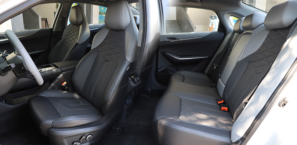 乘坐空间部分,前排不用考虑,电动调节座椅,四向可调节方向盘,绝对能够满足用户的乘坐需求。同时,以个人175cm的身高,后排腿部及头部空间均有着一定的冗余空间,加之后排中央地板凸起不高,即便后排乘坐3人也不会过于拥挤。座椅配置部分,除常规电动调节外,还支持加热与通风,加之打孔皮质包覆日常乘坐的舒适度还是不错的。只不过,座椅通风仅主驾支持,如果副驾也能升级座椅通风,使用体验会更高。