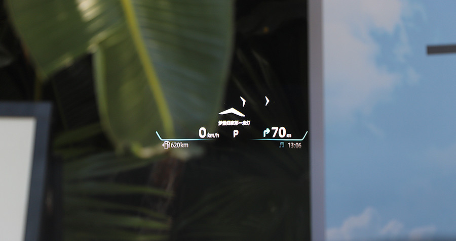同时,锐程PLUS还拥有AR-UD增强现实抬头显示功能,拥有7.5m远距离虚拟成像能力,可实现52英寸超大投影。这套AR-HUD给人最直观的感觉是,投影尺寸真是很大,同时能够显示超多信息,如车速、导航、音乐、辅助驾驶以及歌词等等。同时结合导航可实现实景导航,在临近转弯时刻通过渐变指示指令,进行动态动画引导,避免错过重要路口。