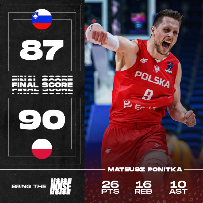 波兰队长波尼特卡上半场便贡献了16分7篮板7助攻,全场比赛砍下26分16篮板10助攻,这是欧锦赛历史上自1995年以来的第三次三双。